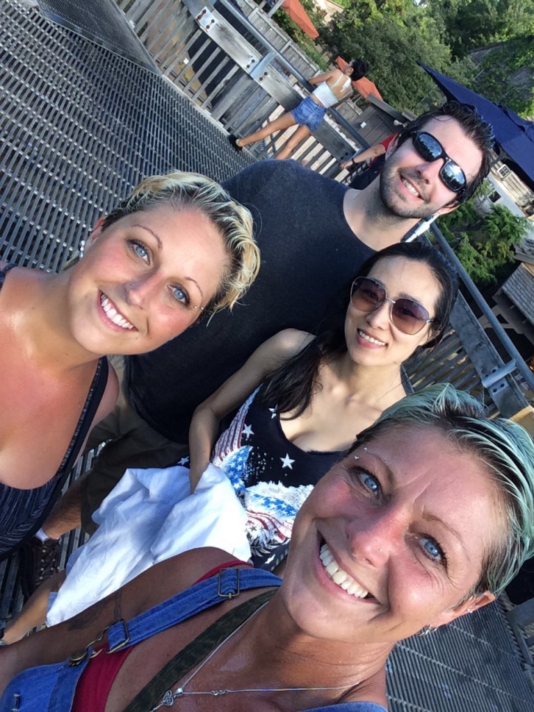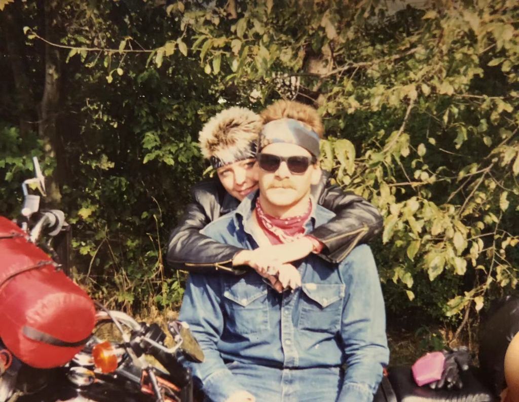 I think about those three weeks I spent at her side a lot. That time is mixed in with all my memories of her now. I see her in her hospital bed, her eyes shining brighter than what you think is possible. My aunt putting lotion on her arms to keep her skin and all the tattoos smooth. I see her hugging my wife and holding my son as a baby. I see her laughing at something ridiculous my brother has said just before the camera takes the picture, the one I have hanging up in my classroom with a bunch of other family photos. She’s telling a sixteen-year-old me that I can get a tattoo if I want. I see her on my step-dad’s Harley, decked out in leather. Her hair is short, blonde, and spikey. I see her in her white wedding dress, styled after a western cowboy theme, standing next to my brother and me as we give her away. I mess up and try to say my line twice before finally getting it right. We’re all traveling to NYC together, hanging out and eating cheap food to save money. I see her dancing in the kitchen to Motown with my brother. I see her fighting through depression, teaching me how to do it, too. I see her excited, standing in line with her sister and me and my wife at Cedar Point, waiting for our turn to ride. I see her smiling and crying as I come out of customs at the airport, arms up, waiting for a hug. I see all these memories and more.