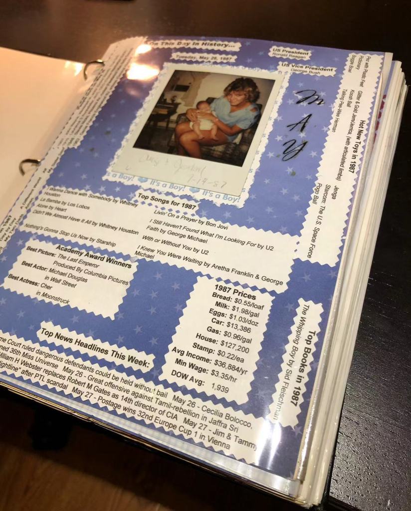 This scrap book is something else. My senior English teacher had all of us put together scrap books of our lives as a big project. I started on mine much too late to make anything special on my own. But when I complained that I was probably not going to do well and told my mom about it, she lit up and said she’d help.