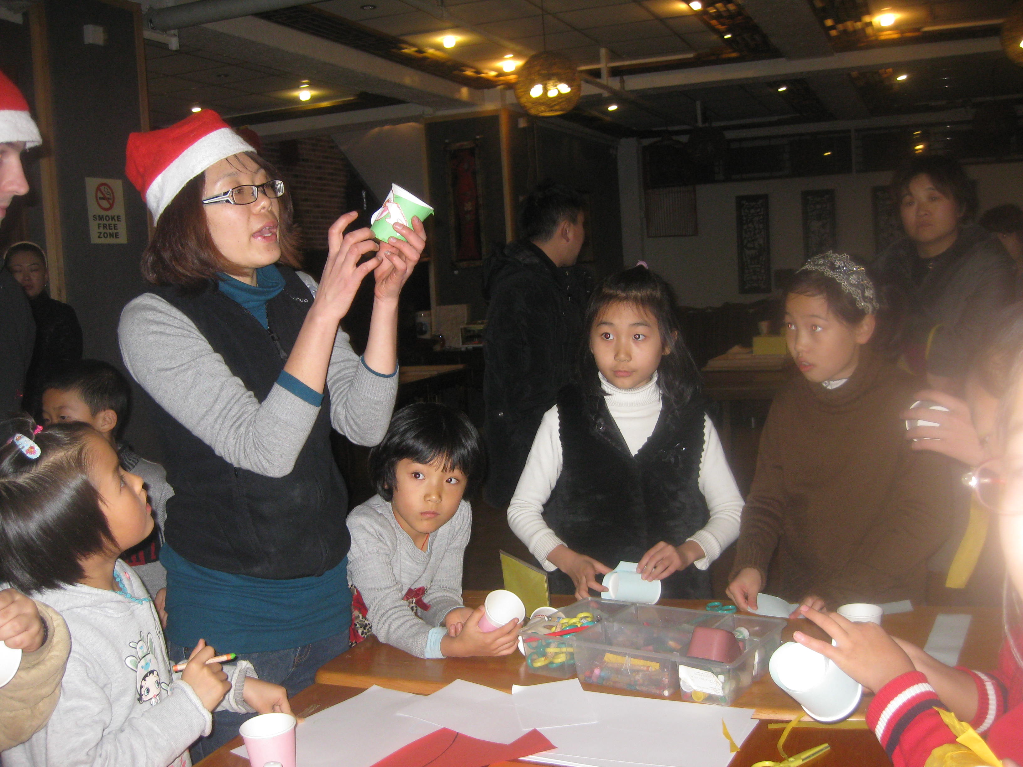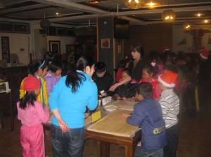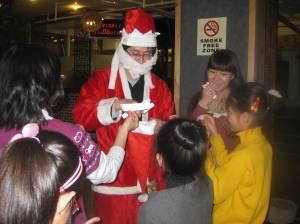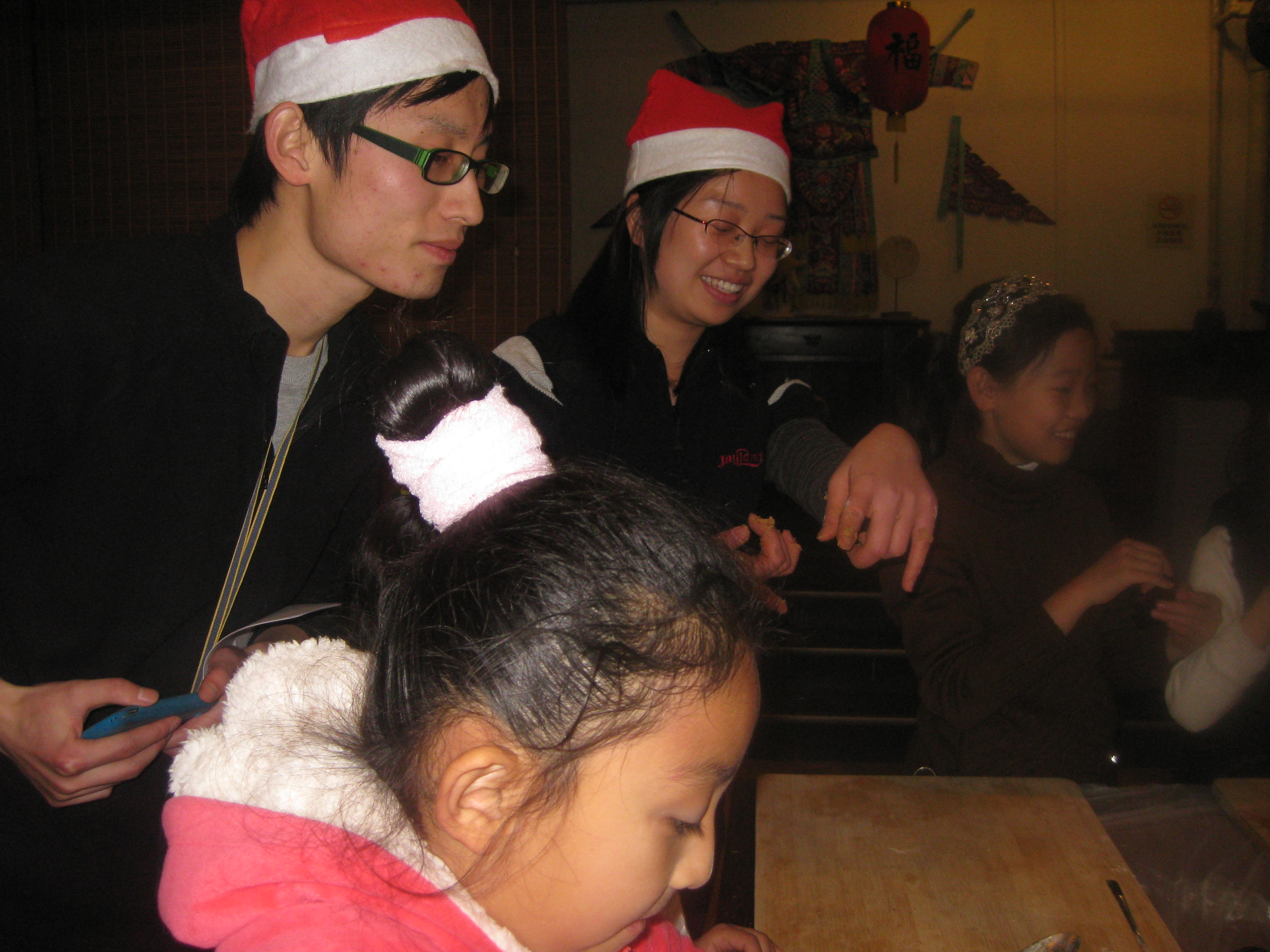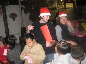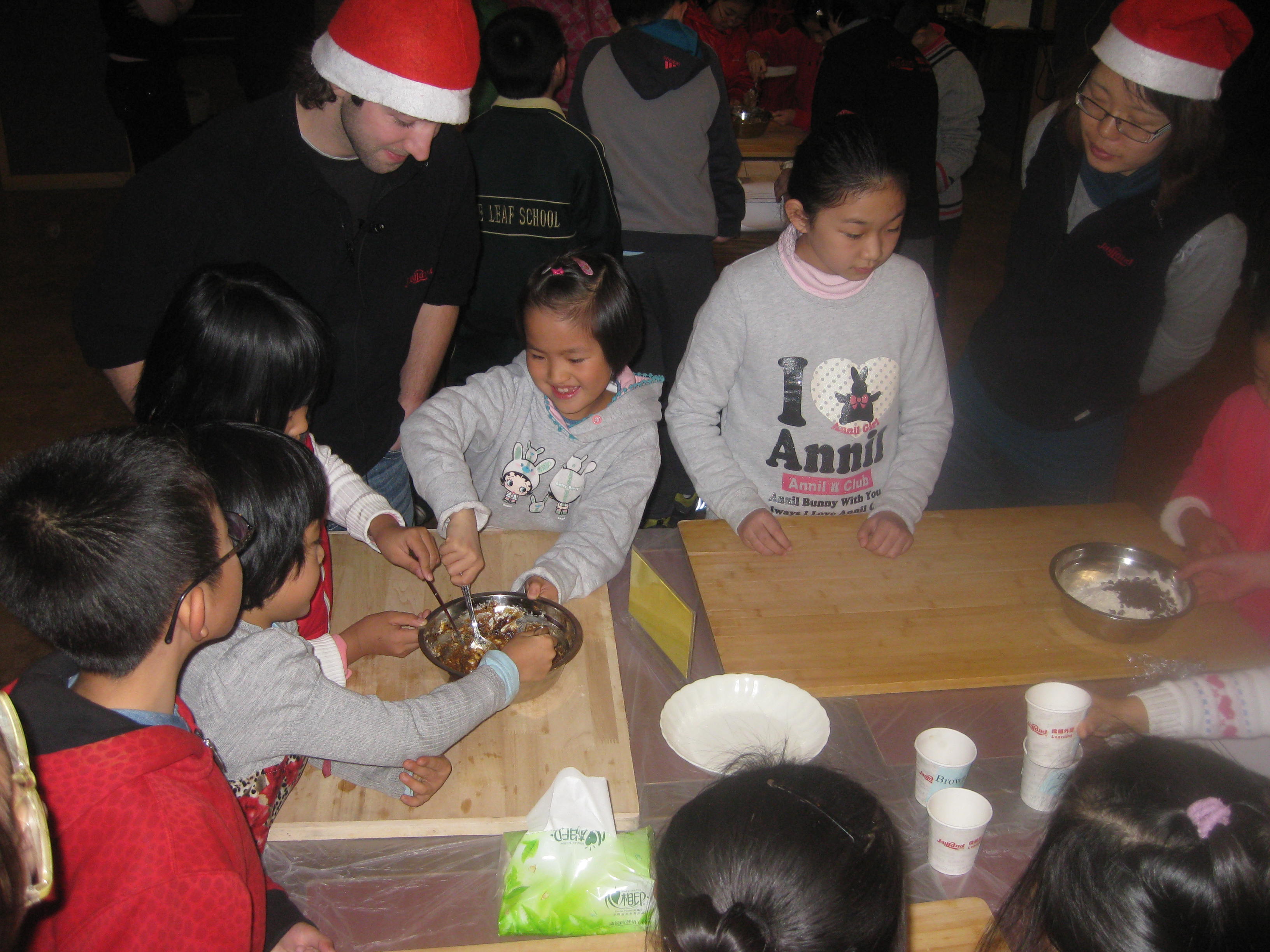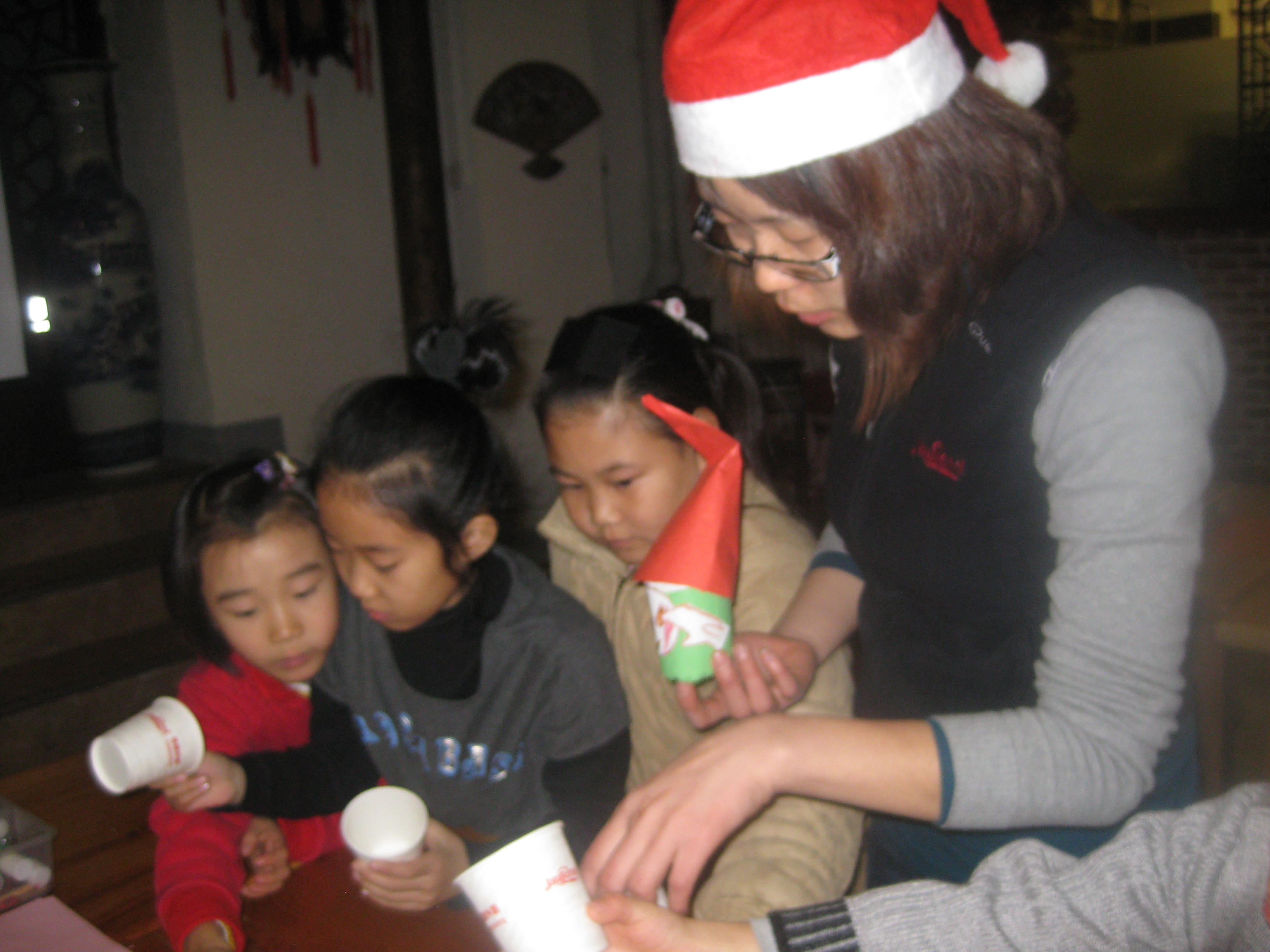 I was placed “in charge” of the craft area….riiight. Does it look like I know what I’m doing?It’s Santa Tom!! He’s asking the students questions in English about Christmas, and then he gives them candy.Mixing the ingredientsYeah, she knows what she’s doing better than I do.Noelle and one of her students