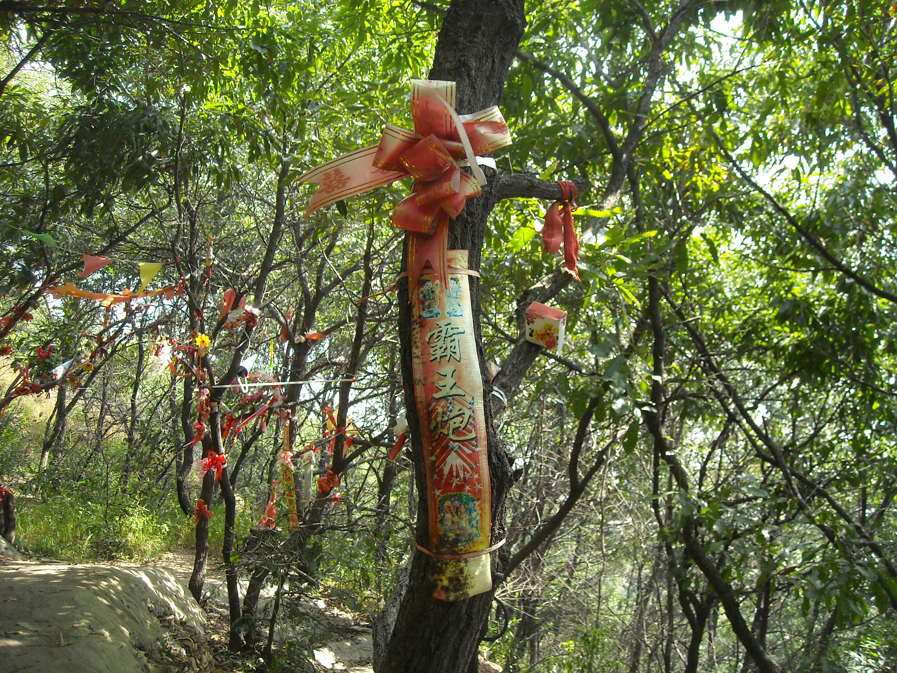 We kept hiking on up the path, but before we got to the top we ran into some of these ribbons that were tied to trees. My best guess (and that’s all it is) is that they’re from the “lovers” that have visited the “Lovers Garden,” which, by the way, is a horrible name for the stone pathway…there was not one flower to be seen. Now, I’m not a botanist or even into horticulture; heck, I can barely remember to water a cactus enough to keep it alive, but I just think that anything with the word “garden” anywhere in its name should have flowers somewhere in the vicinity. And overgrown weeds don’t count.