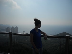 There’s this little stop off where some folks were eating their lunch and just hanging out. Off to the side there was this really cool looking stone walking path that led to something called “Lover’s Garden.” It was fenced off to the public, but I stepped over the chain anyways and coaxed Noelle into doing the same. I’m glad we did. Large stones with Chinese characters carved into them littered what I soon realized was the very edge of the mountain.