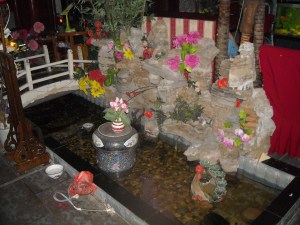 Since we arrived late in the day that first night we just wandered around. We walked a mile or so down and up some streets until we found a pond. The sun was setting so we just enjoyed walking around it for a while. In China, just about every public area you go to has the max capacity of human bodies. Eventually the pond/park place became a bit crowded. Noelle and I ditched it for some grub. We found a nice restaurant that served some Western style food. The Little Yard.