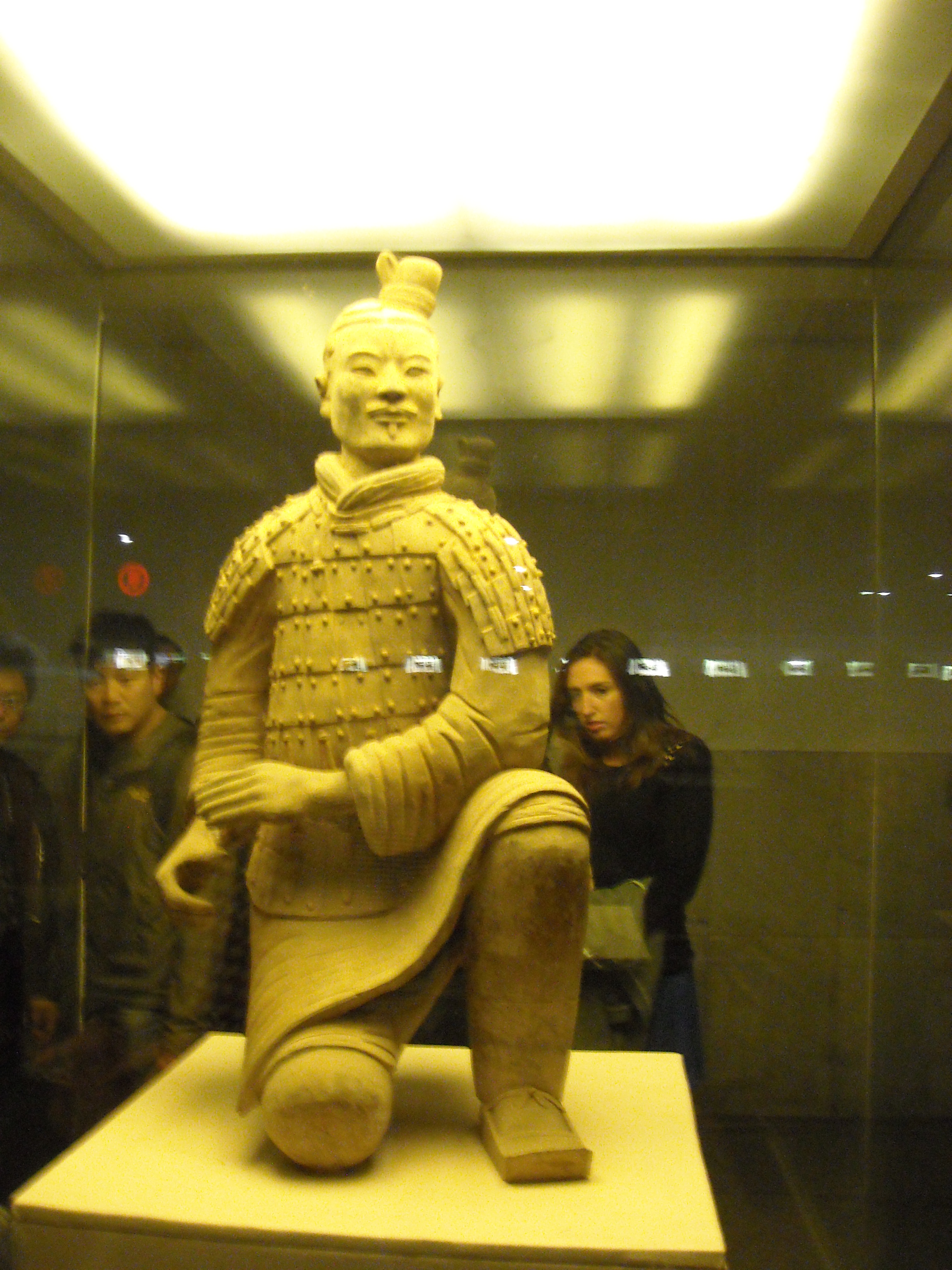 Hesitantly, I raised my hand and said, “Here,” as though checking in for roll call. In front of everyone she pulled out a three inch tall Terra Cotta Soldier and handed it to me, saying simply, “This is a gift for you.” I accepted the little soldier gladly, but could feel the eyes (and maybe judgment?) of the other group members as I held it. The thing looked much older than the few I had bought in Xi’an for souvenirs and I instantly liked it, even though the condition under which I came to possess it seemed a bit strange.