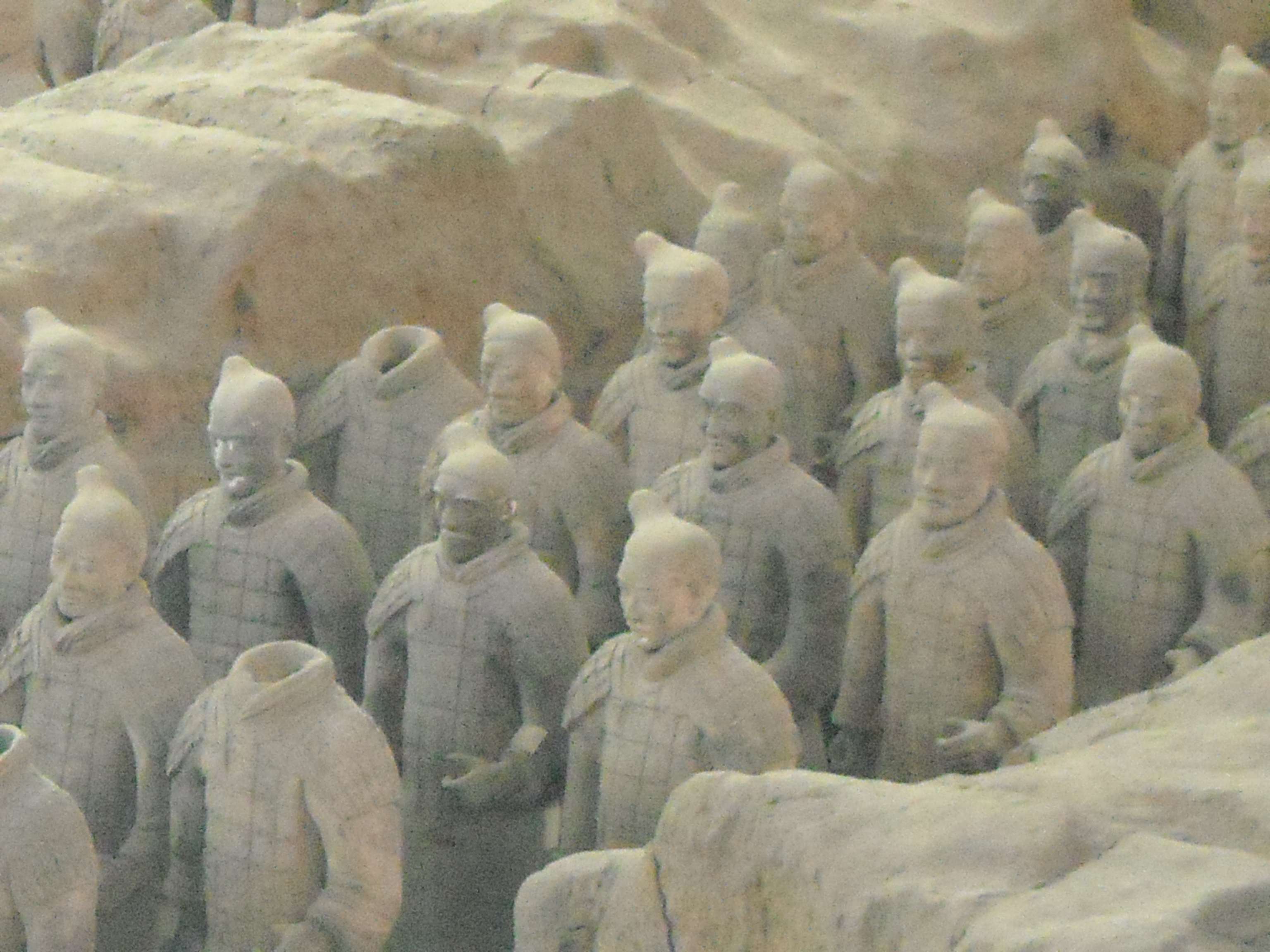 After eating breakfast in the Han Tang Inn while American country music played on the house stereo, we boarded a long van with other travelers—Canadians, Brazilians, French, Scottish, Italian, English, Australian, Singaporean, Chinese, and yes, me as the one American. We were on our way to see the Terra Cotta Warriors (Bing Ma Yong), the first emperor’s army that was to protect him in the afterlife.