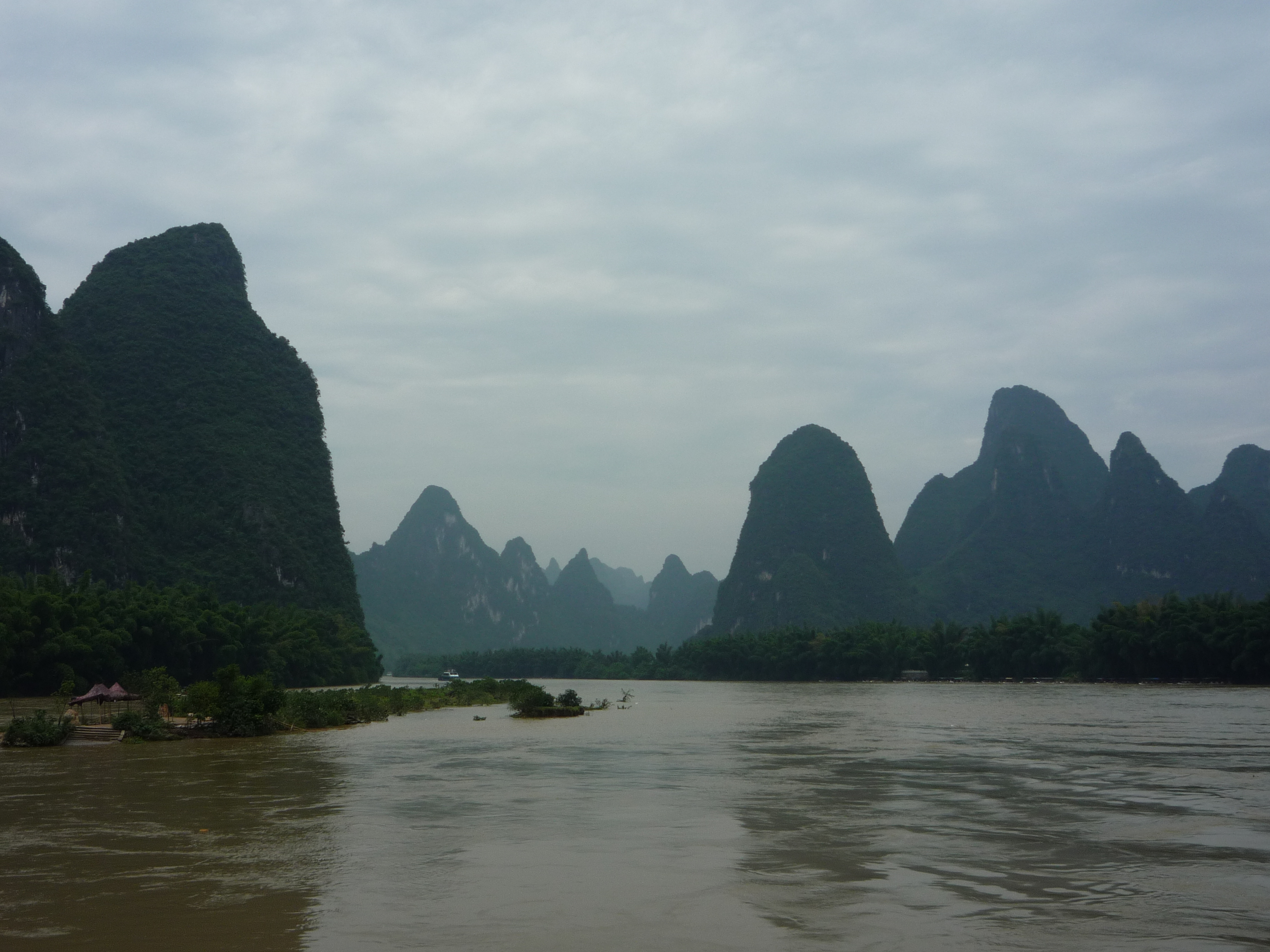 The bamboo raft ride down the Li River got the ax, but the big yacht worked out all right. Moving from our first room to the next seemed irritating, until we were put up in a private room with a shower. The rainy bike ride appeared less than ideal, but then we realized the rain cooled us down when the area is usually painfully humid most times of the year. The hostel, Riverside Hostel, actually sat along the banks of the river, and the young staff, helpful and tolerant of my accented Mandarin, was fun to talk to.